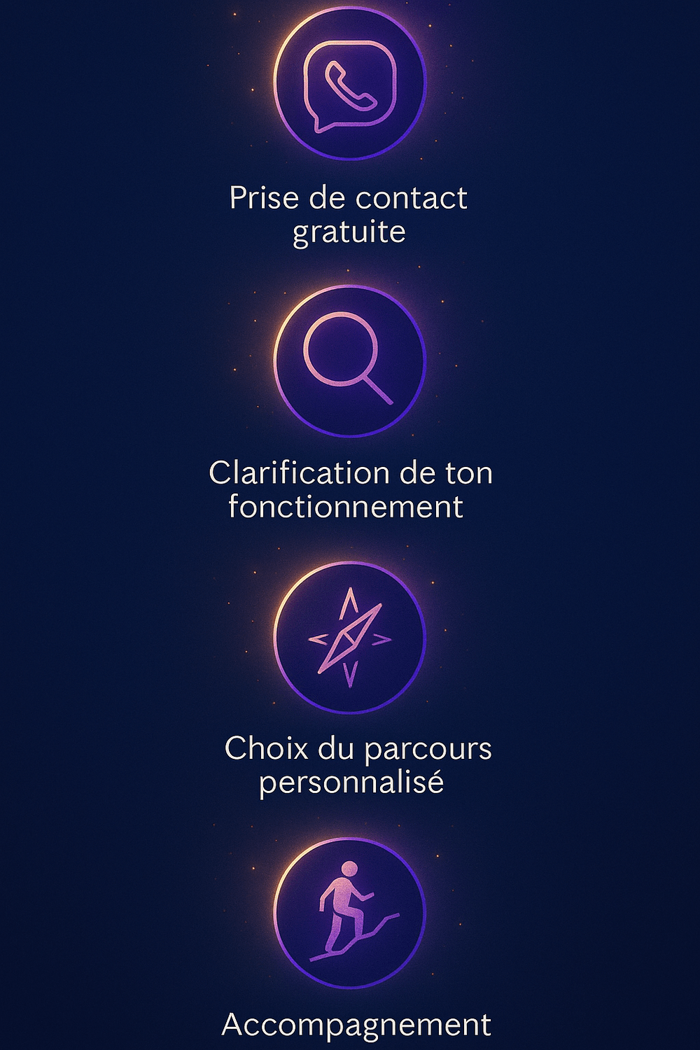 On avance pas à pas, entre prise de conscience, outils concrets et intégration réelle dans ton quotidien.